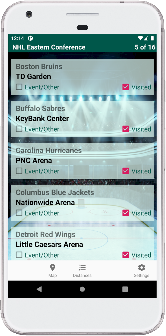 Both leagues of all Major League sports are included when you purchase the app and our one-off cost includes all the sports. This means you can track the venues you have visited not only in your preferred sport but also for the other 5 sports, all in the same app. Check out the supported sports and the leagues included with the app.